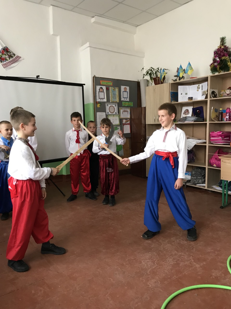 батьками ретельно готувалися до свята , розучували пісні , вчили вірші . У заході приймали участь всі учні класу.Захід розпочався виконанням державного гімну України учнями та батьками . Діти ознайомили присутніх з історією козацтва ,їхніми звичаями , традиціями та вправно демонстрували свої спортивні навички.На завершення свята батьки приготували смачну козацьку кашу.
