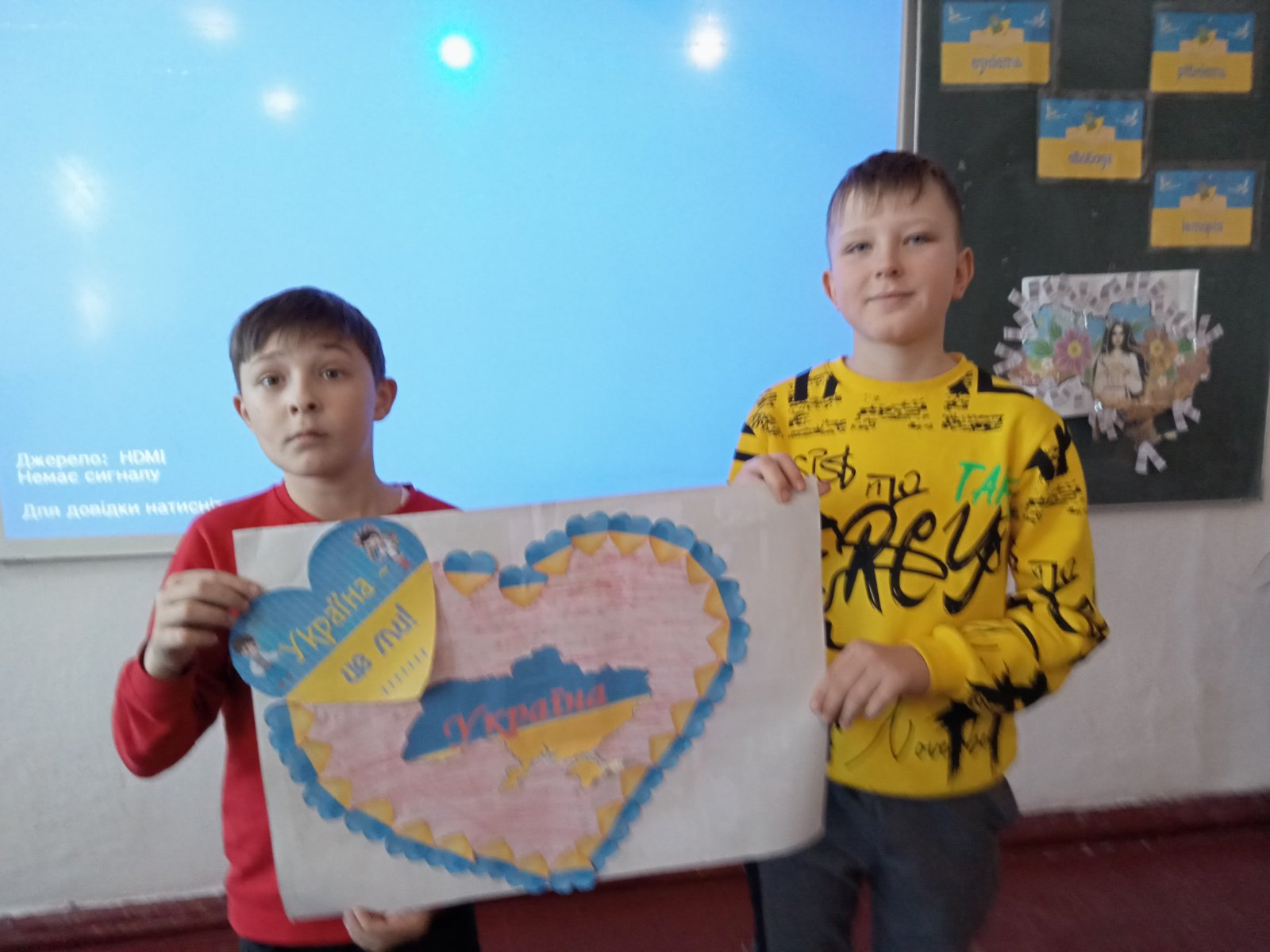«Я люблю Україну» розміщено на стенді школи для загального огляду. В акції